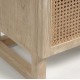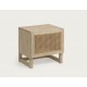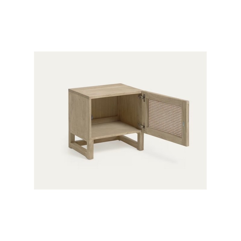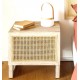 Mesa de cabeceira Texi de madeira maciça da mindi com efeito desgastado e arrumação com porta em vime tecido.