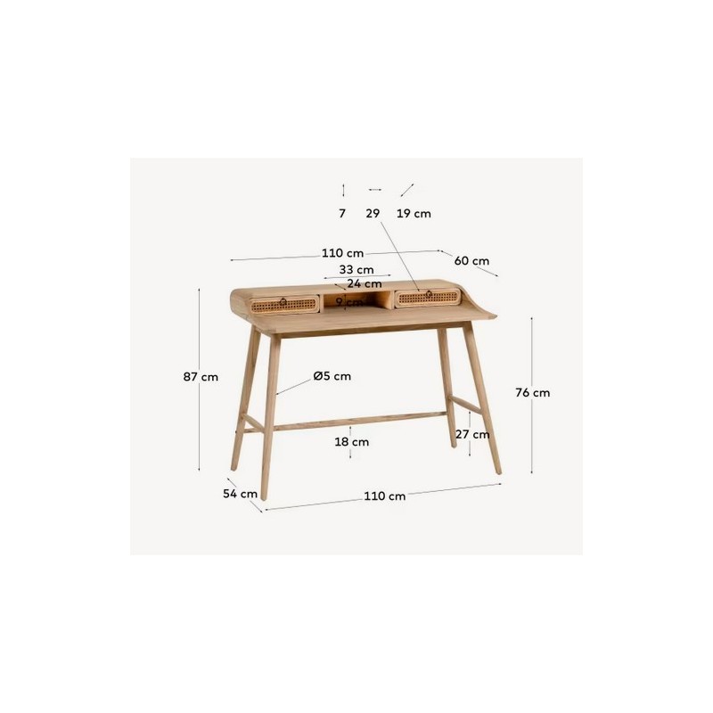 TMesa de escritório de madeira e rattan Mindi 110x60 Ula VeryForma.
