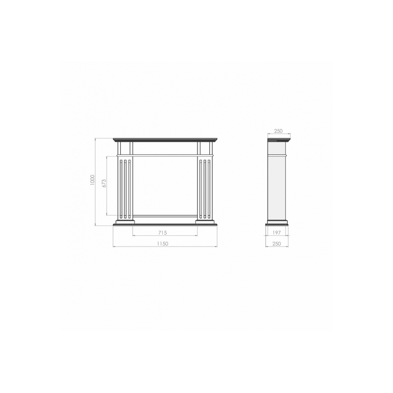 - Dimensões: W1150 x H1000 x D250mm