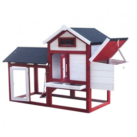 O charmoso galinheiro de madeira vermelho e branco oferece todo o conforto necessário para 2 ou 3 galinhas.