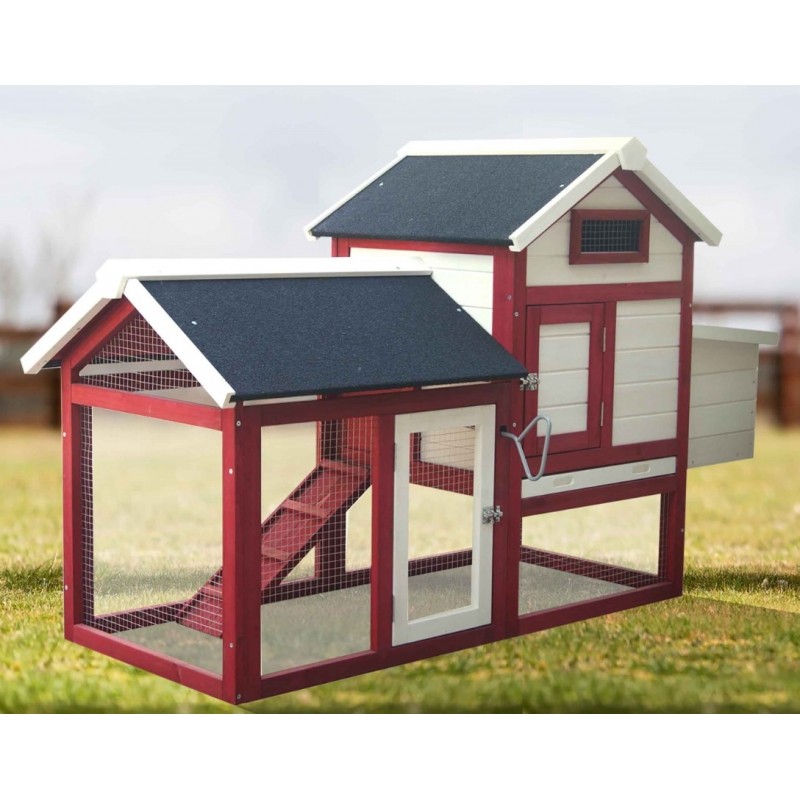 Material: 10 mm pintado vermelho e branco abeto não tratado - Padrão 2-3 galinheiro de madeira de dois tons.