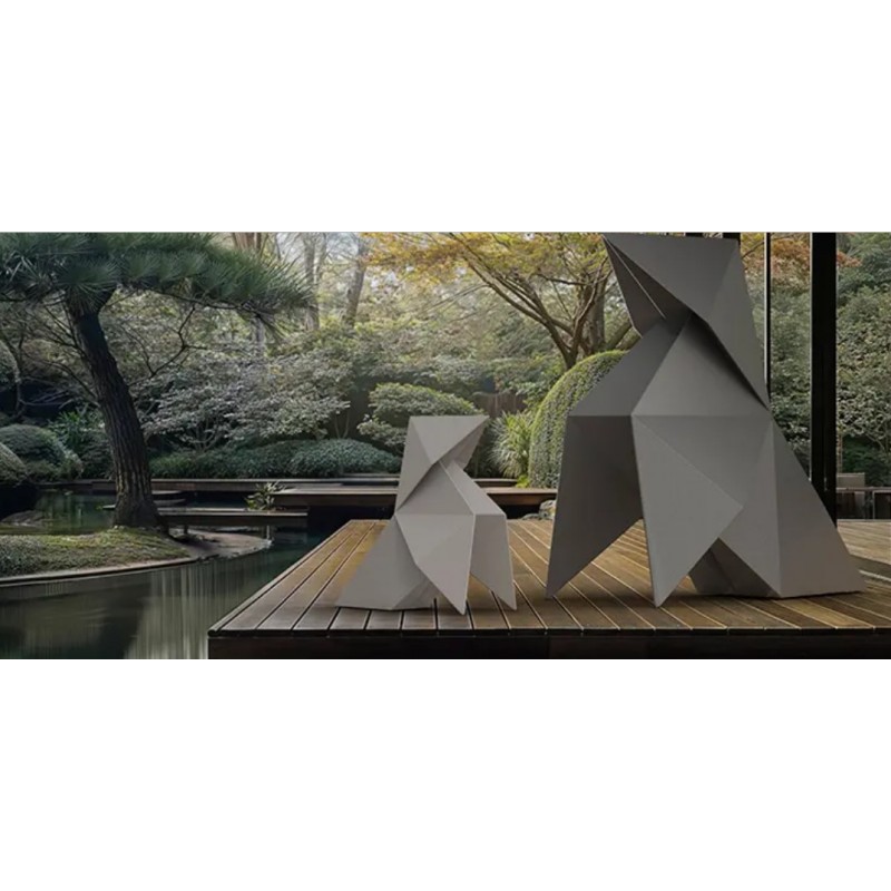 As estátuas da coleção Origami são feitas de polietileno usando a técnica de rotomoldagem, que garante excepcional resistência e durabilidade, perfeitamente adaptadas ao ambiente externo e interno.