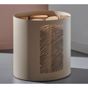 Sua cor arenito intensifica este convite para viajar Prático com seus rodízios integrados para mover facilmente o armazenamento de madeira perto do dispositivo. Estética pelo seu jogo de transparência criado pelos cortes finos de aço.