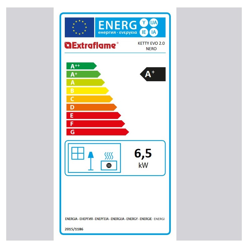 O Fogão a pellets ventilado Ketty Evo O Nordica Extraflame tem uma potência nominal de 7kW que pode aquecer até 186m3 programáveis semanalmente. O fogão a lenha tem capacidade para 15kg de pellets.
