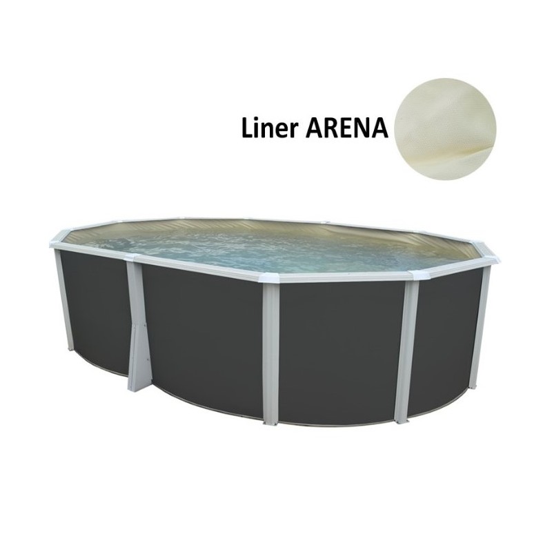 Piscina oval compacta TOI 1,32 m de altura Antracite com escada, escumadeira, forro, perfis, filtro de areia.
