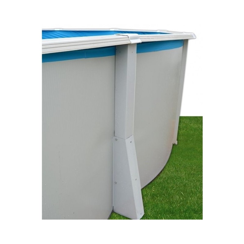 Piscina oval de 132 cm de altura sem contrafortes. A piscina se encaixa perfeitamente no seu jardim. Estrutura metálica com perfis metálicos e escumadeira completa.